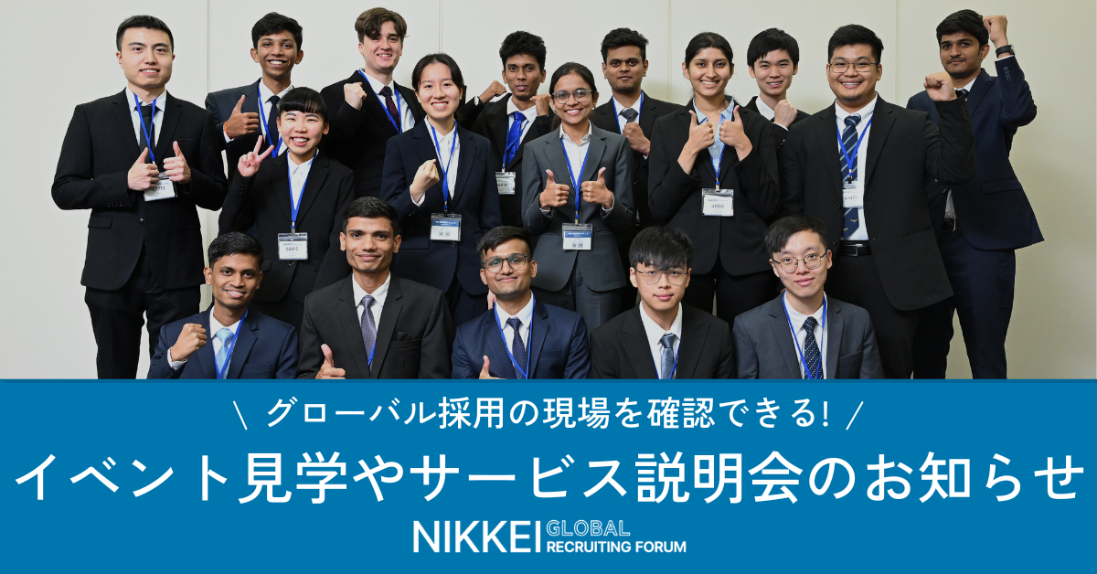 株式会社ASIA to JAPANは日本経済新聞社 人財・教育事業ユニットと共に、NIKKEI GLOBAL RECRUITING FORUMを開催します。人材獲得競争が年々激しさを増す中、優秀なグローバル人材を迎え入れ、共に成長していくことは日本企業の競争力を高める上で欠かせません。本フォーラムは、高度新卒外国人材と日本企業が直接出会い、互いの可能性を広げる場として、その第一歩を後押ししてまいります。