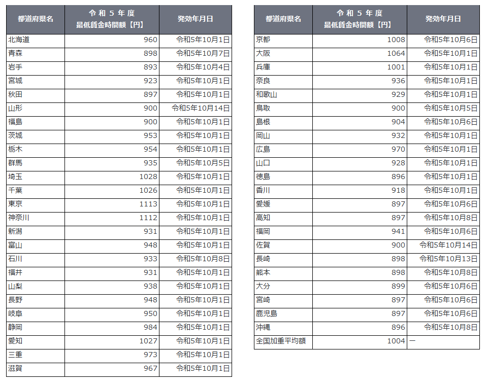 地域別最低賃金