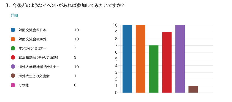 日本は総合職採用がメインであり、大学の専攻と志望する会社や専攻が紐づかないケースも多いですが、海外では大学の専攻を基に就職先を決めるのが一般的。こうした背景の違いから来る質問も目立ち、海外大学生ならではの疑問や悩みが垣間見えました。
