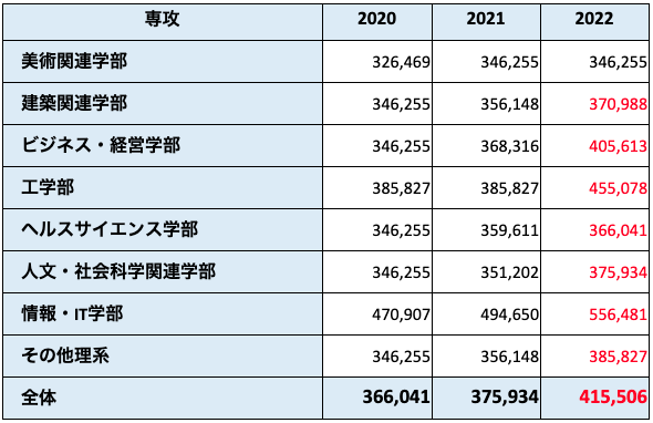 美術関連学部の給与は横ばいであったものの、その他の分野においては平均月給が上昇しました。