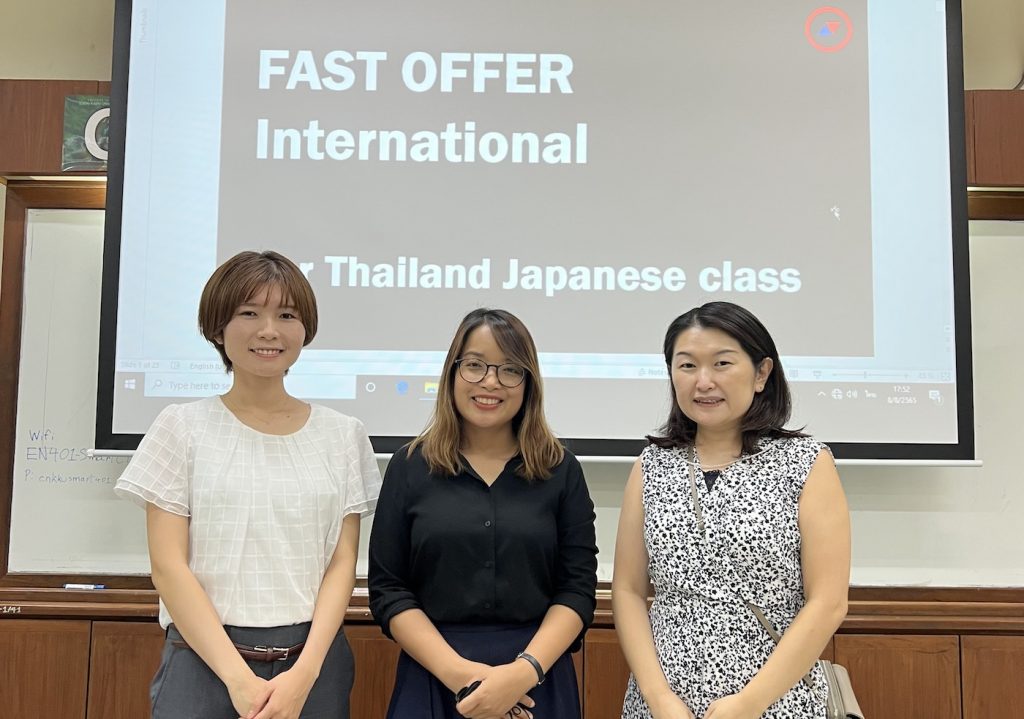 ASIAtoJAPANは、2022年8月7日から8月11日タイを訪問し、トップ大学学生向けに「FAST OFFER 日本語学習プログラム」の説明会を現地で行いました。タイへの訪問は、世界規模のパンデミックの影響もあり2020年2月の訪問以来、約2年半ぶりとなりました。