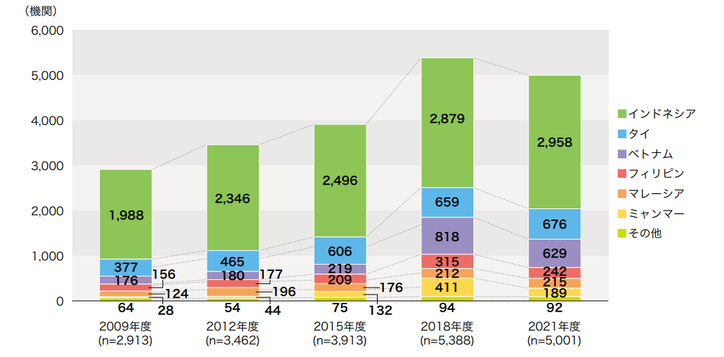 出典:2021年度 海外日本語教育機関調査:p.30(国際交流基金)を引用