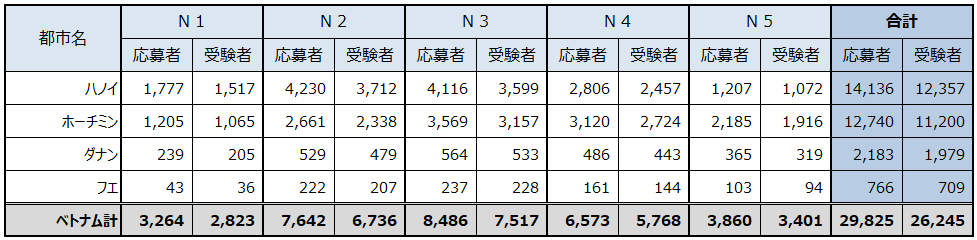 受験者数は年々増加しており、特に日本とベトナムとの経済関係が強化されたことや、特定技能制度による日本での就労機会の増加などが受験者数の増加に寄与しています。