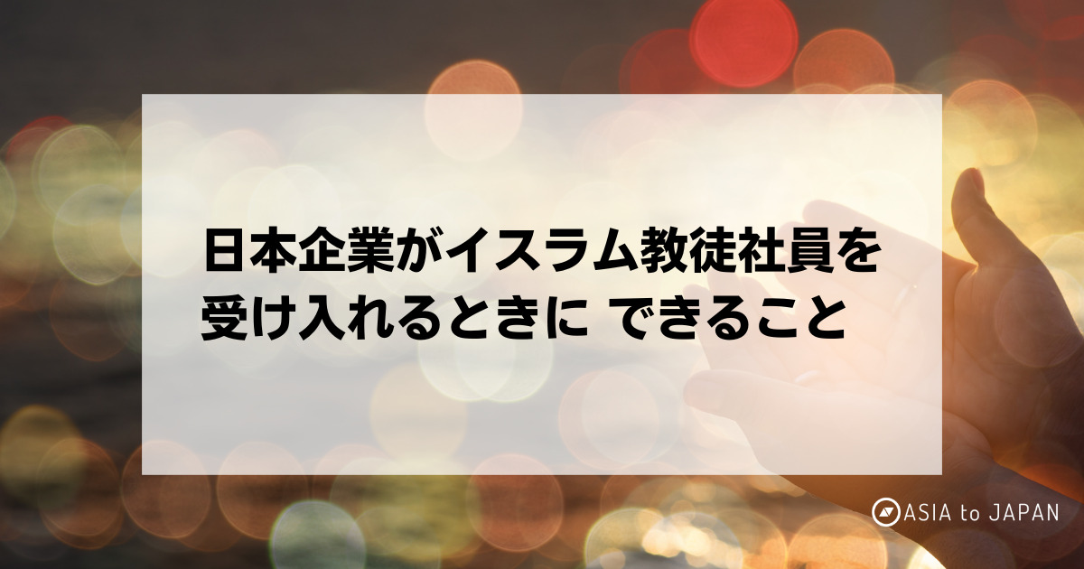 ASIA to JAPANでは海外の学生と日本企業をつなぐ採用サポートの際、イスラム教徒の学生から「日本でハラルフードは手に入るか?」「日本の会社で働いてお祈りをすることはできるか?」など、質問を受けます。一方で受け入れ企業側から「イスラム教徒の学生を採用するとき、何か気をつけることはあるか?」と心配の声を聞くこともあります。
