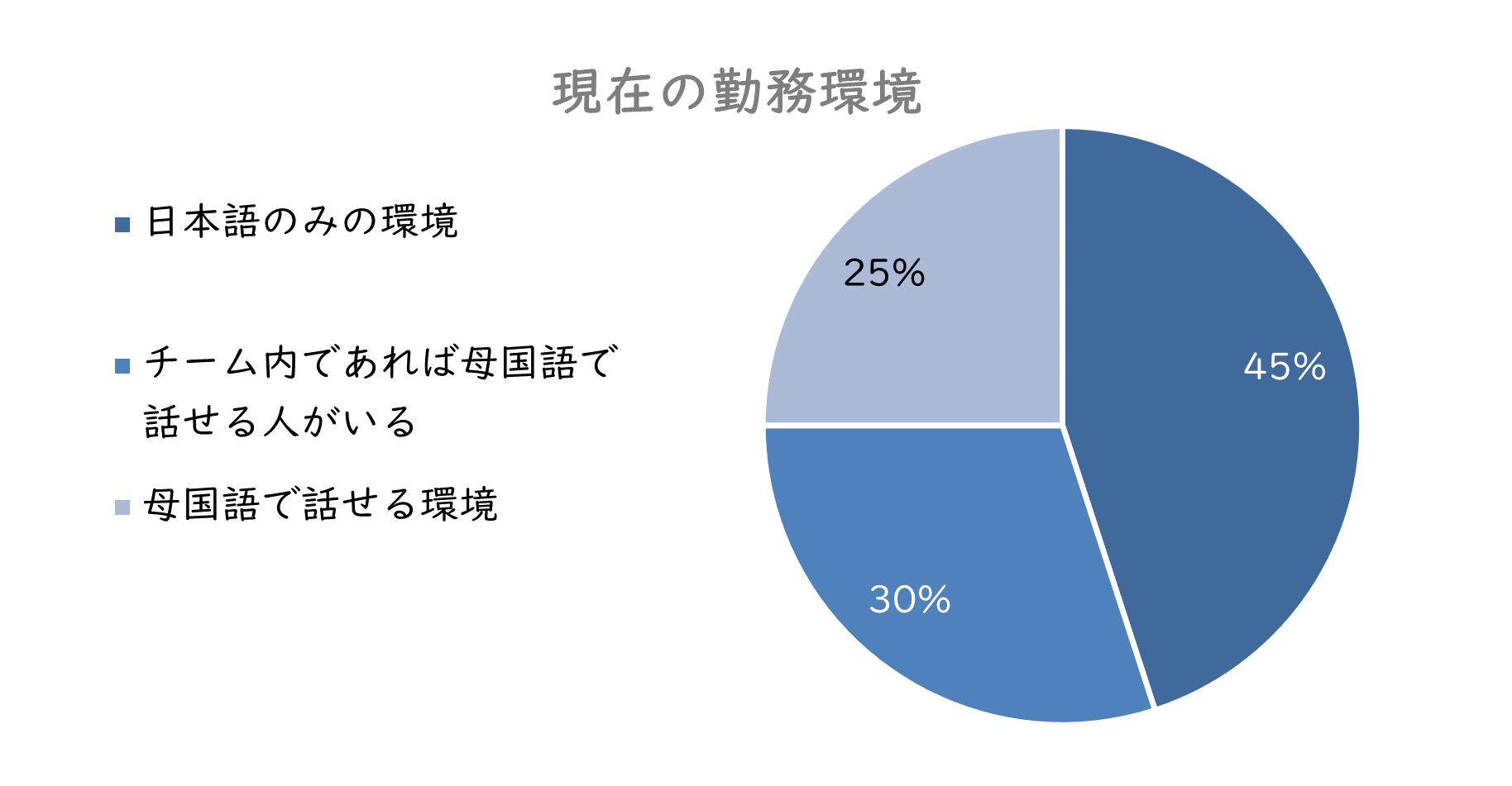 最後に回答者の勤務環境についてですが、約半数が「日本語のみの環境」と回答しています。