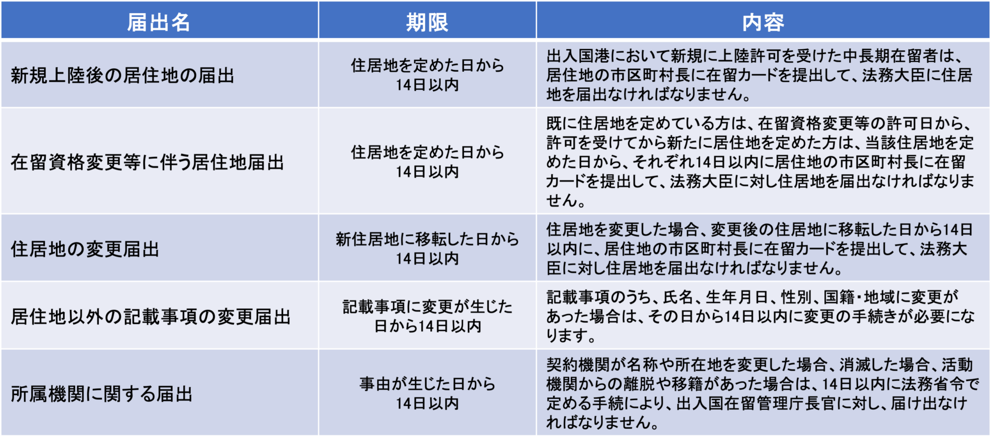 ※この届出は、一部対象外となるケースもあるので要注意です。対象外となるのは、「特別永住者」または在留資格「外交」「公用」の方です。