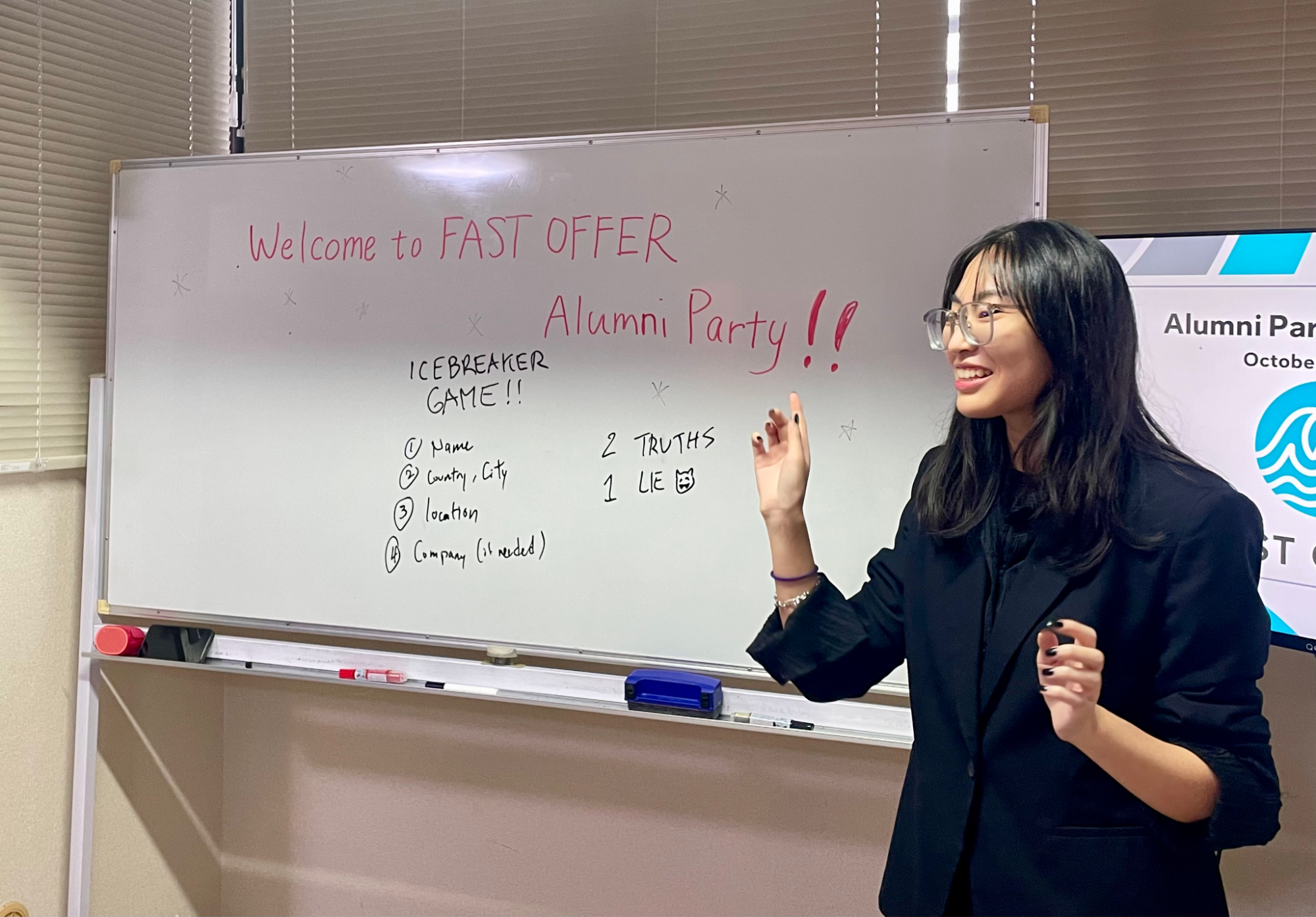 「音楽が好き、3カ国語を話せる、映画が好き」など、一つの嘘を交えた自分にまつわる3つのトピックスを紹介し、他のみんなでどれが嘘か当てるゲームです。