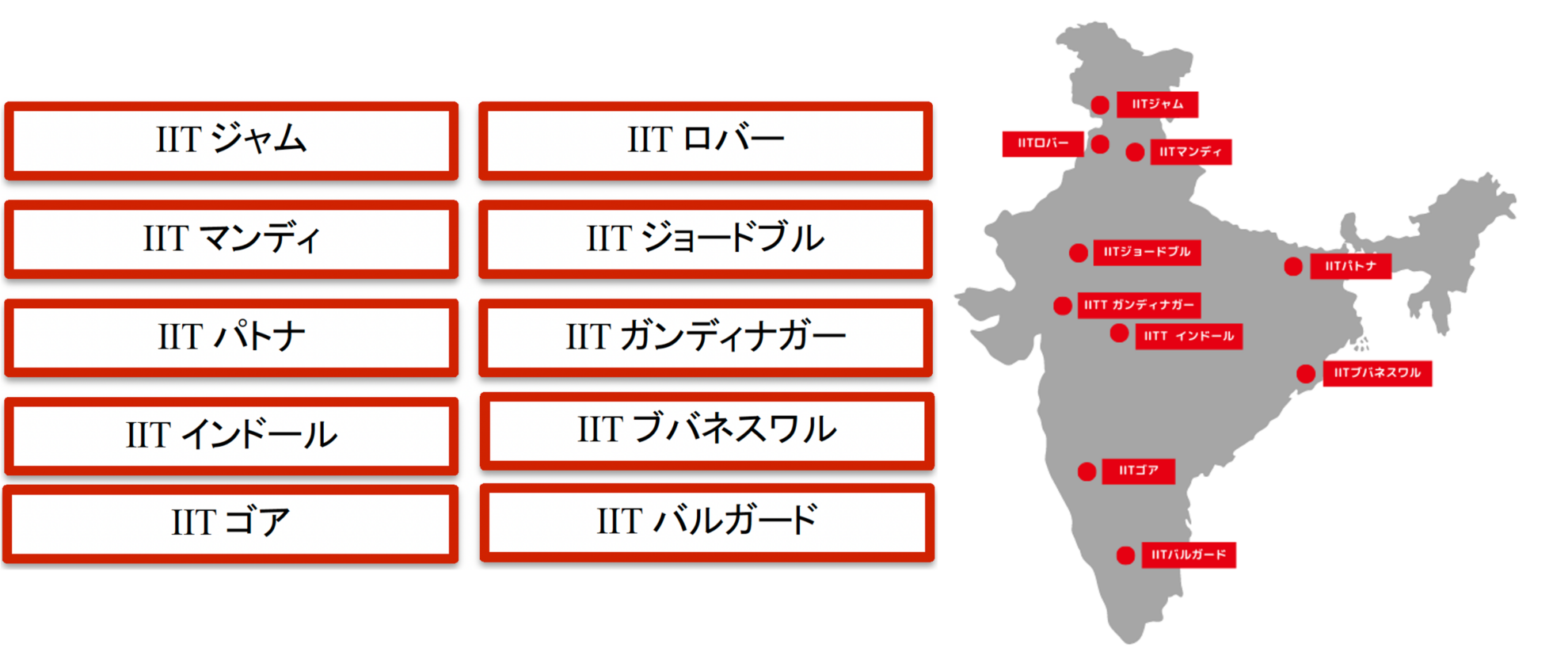 受験者数約100万人に対して合格者約1.6万人と狭き門である。インド工科大学をIITと呼称されます。IITは現在23校あり、それぞれ独立運営されています。特に、マドラス校、デリー校、ボンベイ校、カンプール校、カラグプル校の5校は、OLD IITと呼ばれ世界的に有名なIT企業が率先して採用を行なっており、獲得競争も熾烈を極めています。残る18校はNEW IITと分類され、世界的企業の進出がまだ少ないIITも多く、グローバル就職の先として日本企業への注目度が高く意欲的です。