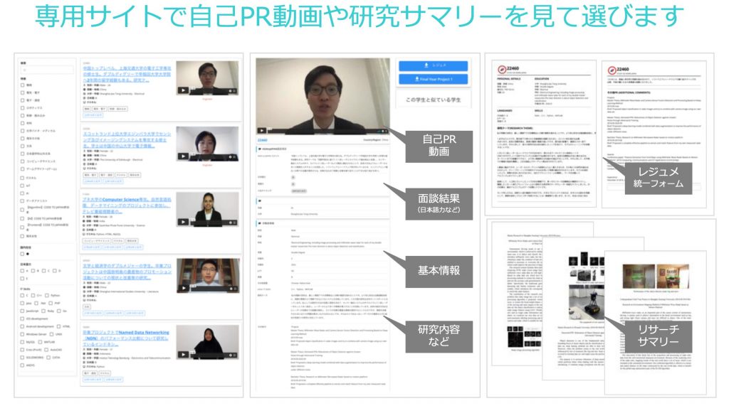 - 約200名の登録情報や研究資料、自己PR動画などと閲覧できる専用サイトを用意
